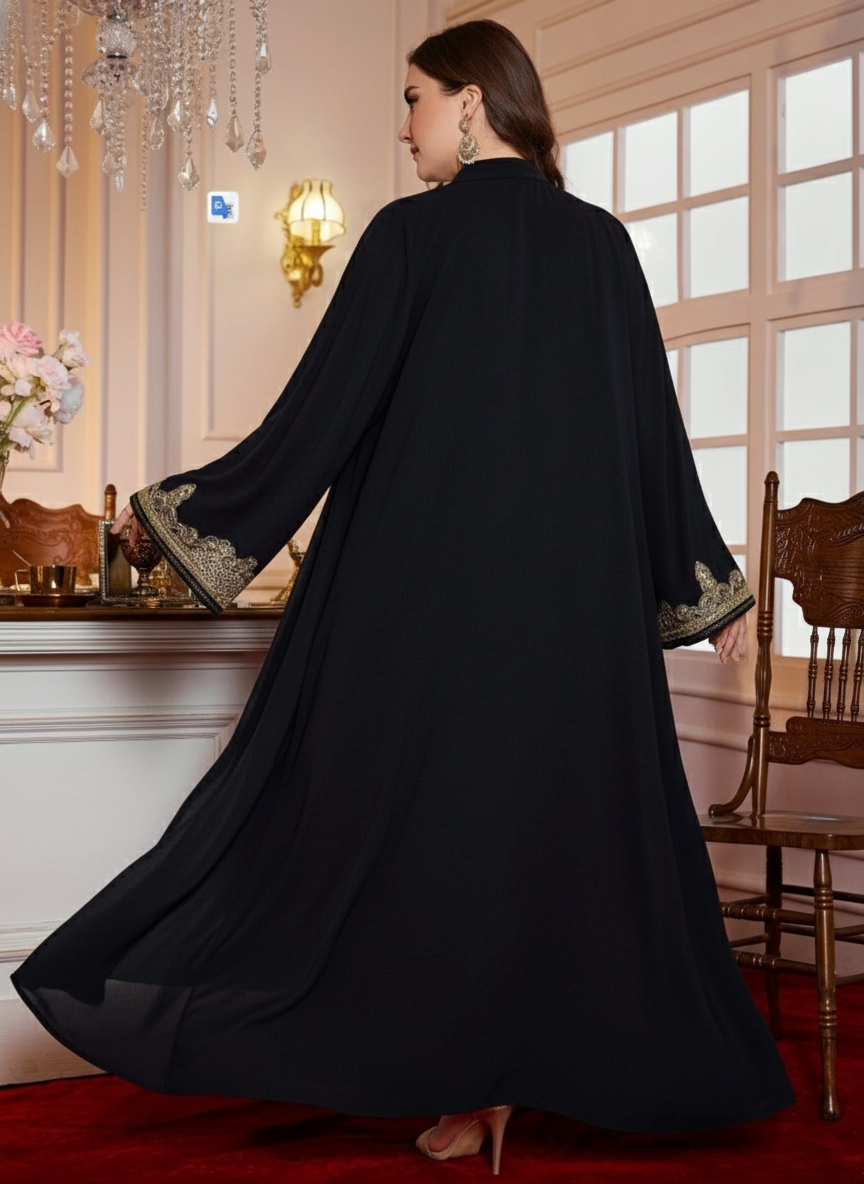 Layrah Plus Size 2 Pieces Set Arabian Style Cloak Maxi Length Embroidered Abaya & Dress, Dubai Luxury Fall Cloth For Women